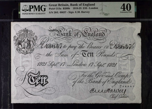 ENGLAND P.313 B209b 1921 Harvey £10 20L EF 40