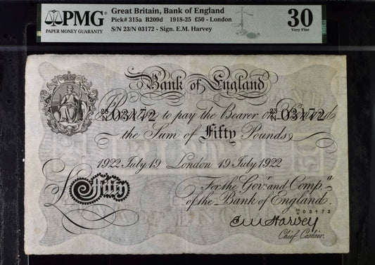ENGLAND P.315 B209d 1919 Harvey £50 24N VF 30