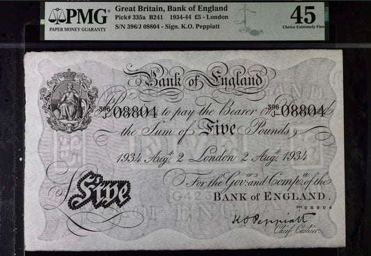 ENGLAND P.335a B241 1934 Peppiatt £5 396J Choice EF 45