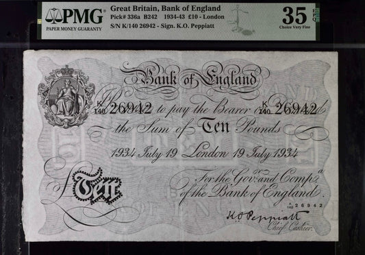 ENGLAND P.336a B242 1934 Early date Peppiatt £10 K140 Choice VF 35 EPQ