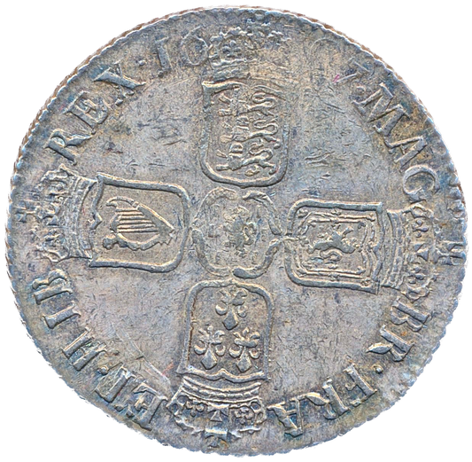 1697 Sixpence S3538 ESC 1237 Third bust GVLIEIMVS error Excessively rare (R4) UNC