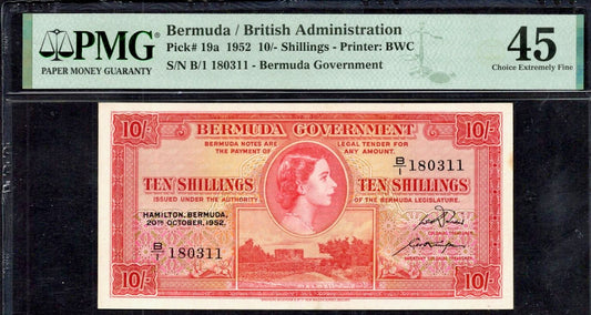 BERMUDA P.19b 1952 10 Shillings Choice EF 45