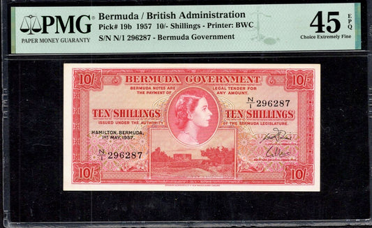 BERMUDA P.19b 1957 10 Shillings Choice EF 45 EPQ