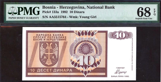 BOSNIA HERZEGOVINA P.133a 1992 10 Dinara SUPERB GEM 68 UNC