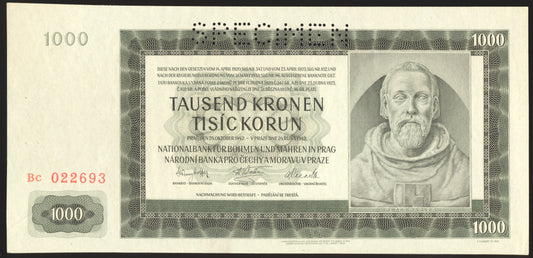 BOHEMIA & MORAVIA P.13s 1942 1000 Korun UNC SPECIMEN