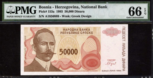 BOSNIA HERZEGOVINA P.153a 1993 50,000 Dinara GEM 66 UNC