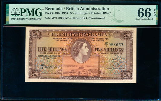 BERMUDA P.18b 1957 5 Shillings W/1 GEM UNC 66 EPQ
