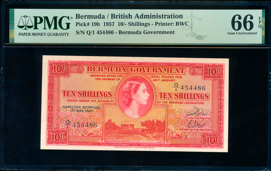 BERMUDA P.19b 1957 10 Shillings Q/1 GEM UNC 66 EPQ