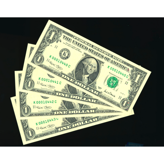 USA P.509 2001 Federal Reserve 4 consecutive $1 UNC