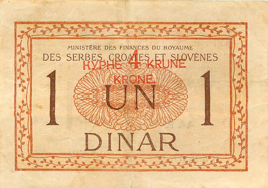 YUGOSLAVIA P.15 1919 4 Kroner over 1 Dinar GVF