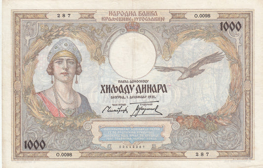 YUGOSLAVIA P.29 1931 20 Dinar GVF
