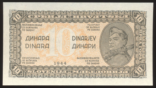YUGOSLAVIA P.50 1944 10 Dinar UNC