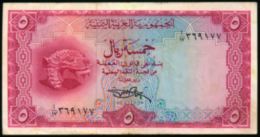 YEMEN ARAB REPUBLIC P.7a 1969 5 Rials GEF