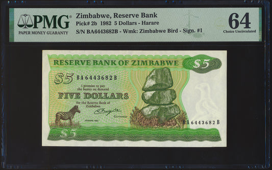 ZIMBABWE P.2b 1982 5 Dollars CHOICE AUNC 64