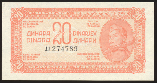 YUGOSLAVIA P.51 1944 20 Dinar UNC