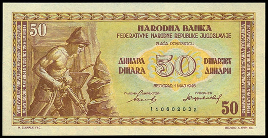 YUGOSLAVIA P.64b 1946 50 Dinar UNC