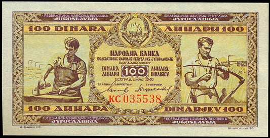 YUGOSLAVIA P.65c (error in Cyrillic) 1946 100 Dinar UNC