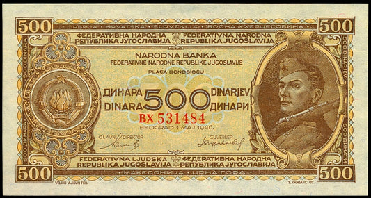 YUGOSLAVIA P.66a 1946 500 Dinar UNC