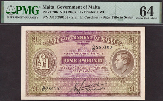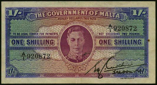 MALTA P.16 1940-1943 1 Shilling First series A/1 GEF