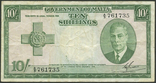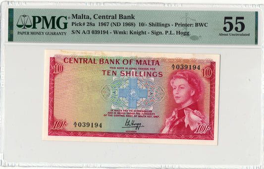 MALTA P.28a 1967 10 Shilling A/3 AUNC 55