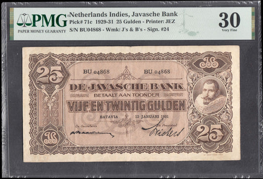 NETHERLANDS INDIES P.71c 1931 25 Guilden VF 30