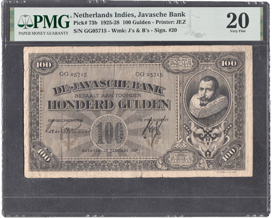 NETHERLANDS INDIES P.73b 1928 100 Guilden VF 20