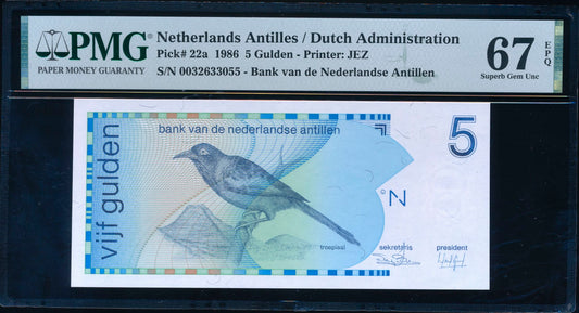 NETHERLANDS ANTILLES P.22a 1986 5 Guilden SUPERB GEM UNC 67 EPQ