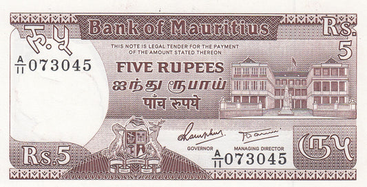 MAURITIUS P.34 1985 5 Rupees UNC A/11