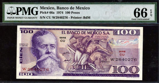 MEXICO P.66a 1974 100 Pesos GEM 66 UNC