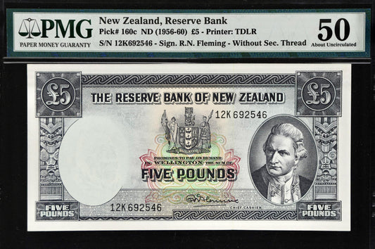 NEW ZEALAND P.160c 1956-1960 £5 AUNC 50