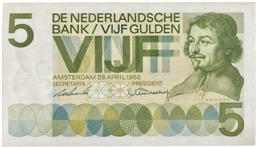 NETHERLANDS P.90a 1966 5 Guilden UNC
