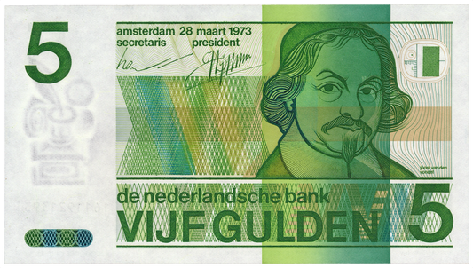 NETHERLANDS P.95 1973 5 Guilden UNC