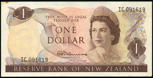 NEW ZEALAND P.163a 1967-1981 $1 NEF