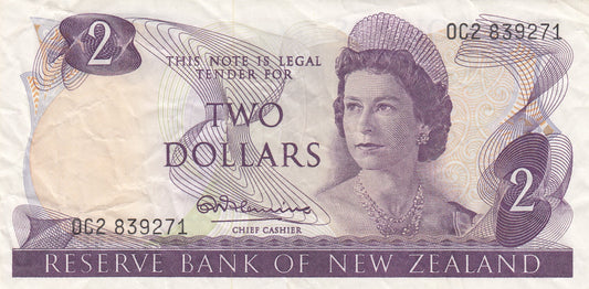 NEW ZEALAND P.164dr 1967-1981 $2 Replacement note AUNC