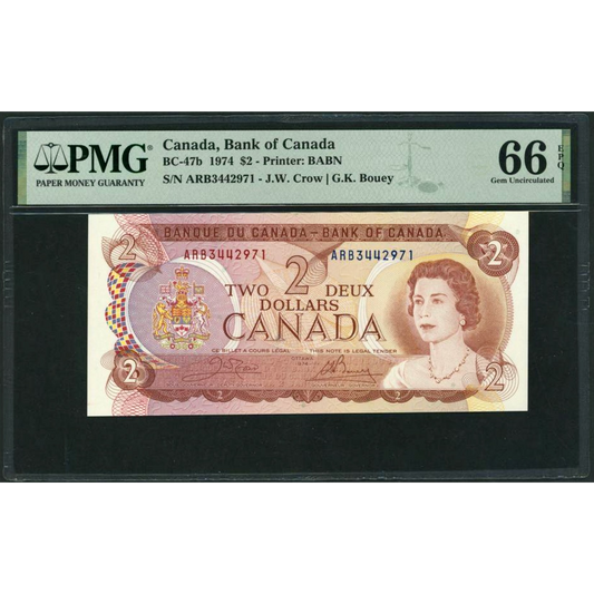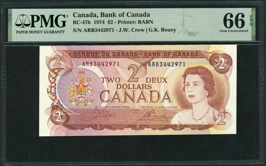 CANADA P.86b BC-47b $2 1974 Crowe, Bouey Gem UNC 66 EPQ