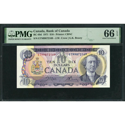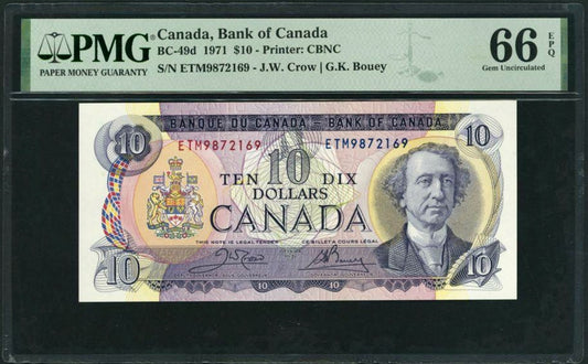 CANADA P.88d BC-49d $10 1971 Crow, Bouey Gem UNC 66 EPQ