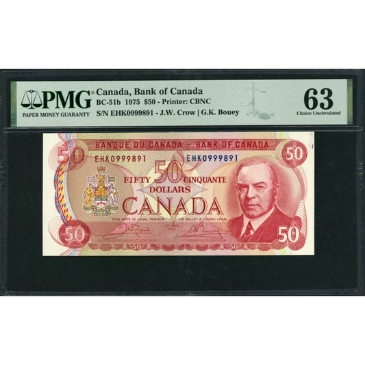 CANADA P.90b BC-51b $50 1975 Crowe, Bouey Choice UNC 63