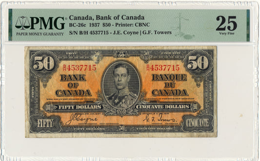 CANADA P.63c 1937 $50 Coyne, Towers VF 25