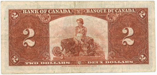CANADA P.59b 1937 $2 Gordon, Towers VF Y/B
