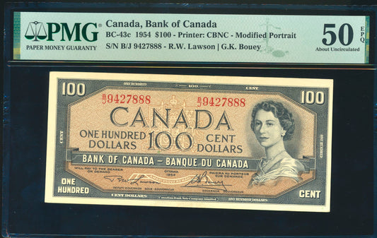 CANADA P.82c BC-43c 1954 $100 Lawson, Bouey EF B/J