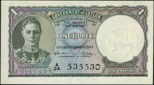 CEYLON P.34 1942 1 Rupee EF