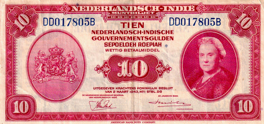 DUTCH EAST INDIES P.114 1943 10 Guilden NEF