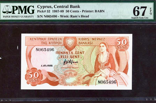 CYPRUS P.52 1979 50 Cents SUPERB GEM 67 UNC
