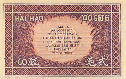 FRENCH INDO-CHINA P.90a 1942 20 Cents AUNC