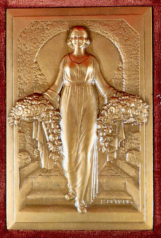 1930 FRANCE 'Woman with Flowers' 92mm*59mm bronze plaquette by Bénard