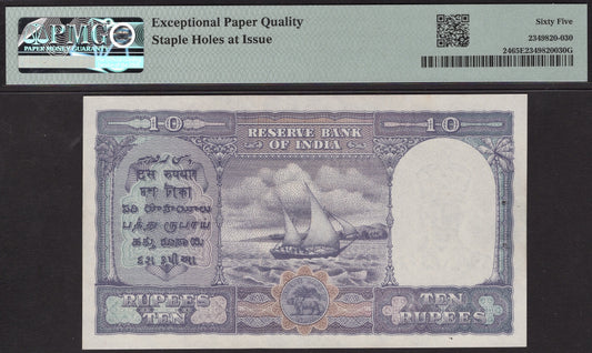 INDIA P.24 1938 - 1944 10 Rupees Gem UNC 65 EPQ