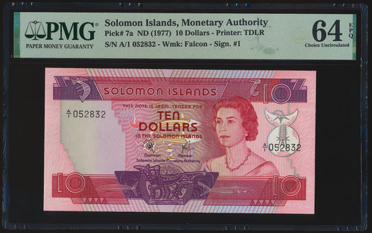 SOLOMON ISLANDS P.7a 1977 10 Dollars A/1 CHOICE UNC 64 EPQ