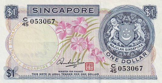SINGAPORE P.1d 1967-1972 1 Dollar AUNC
