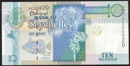 SEYCHELLES P.31a 1983 10 Rupees low serial number GEM UNC 66 EPQ
