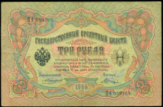 RUSSIA P.9b 1909-1912 3 Ruble NEF